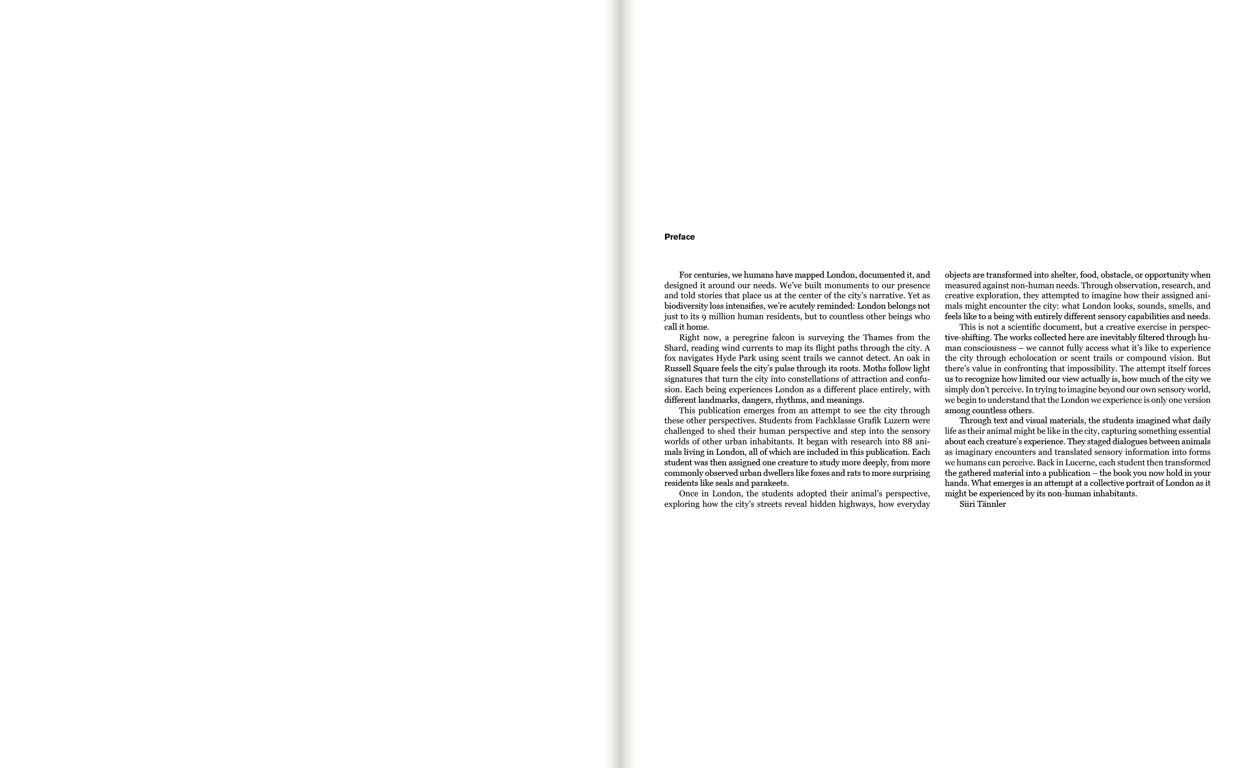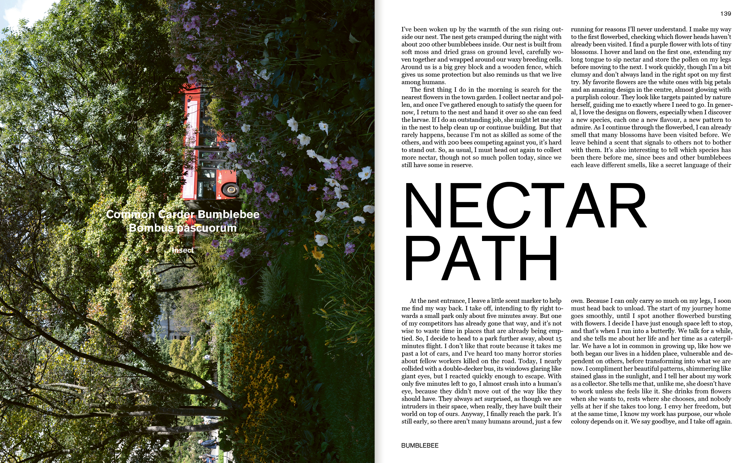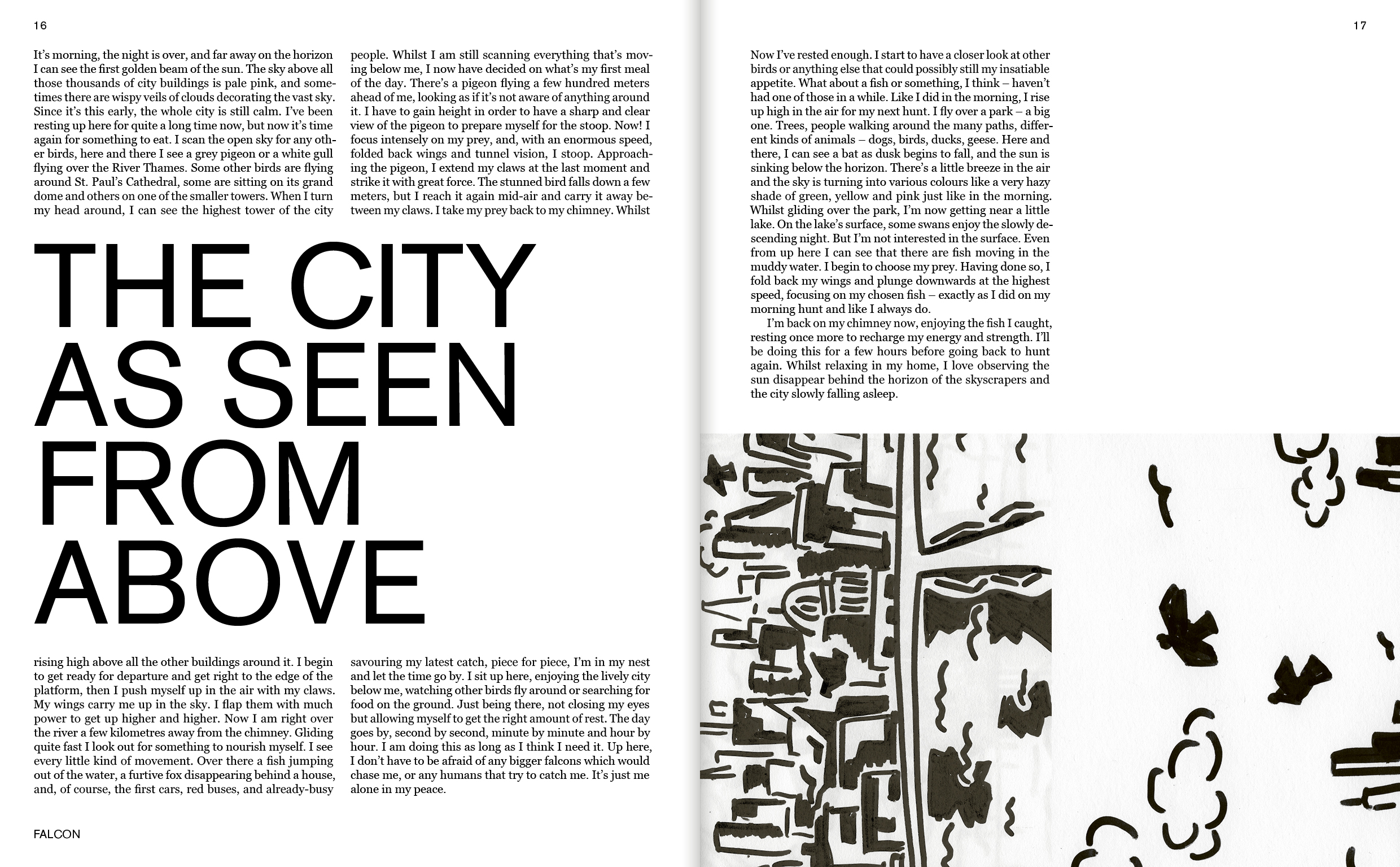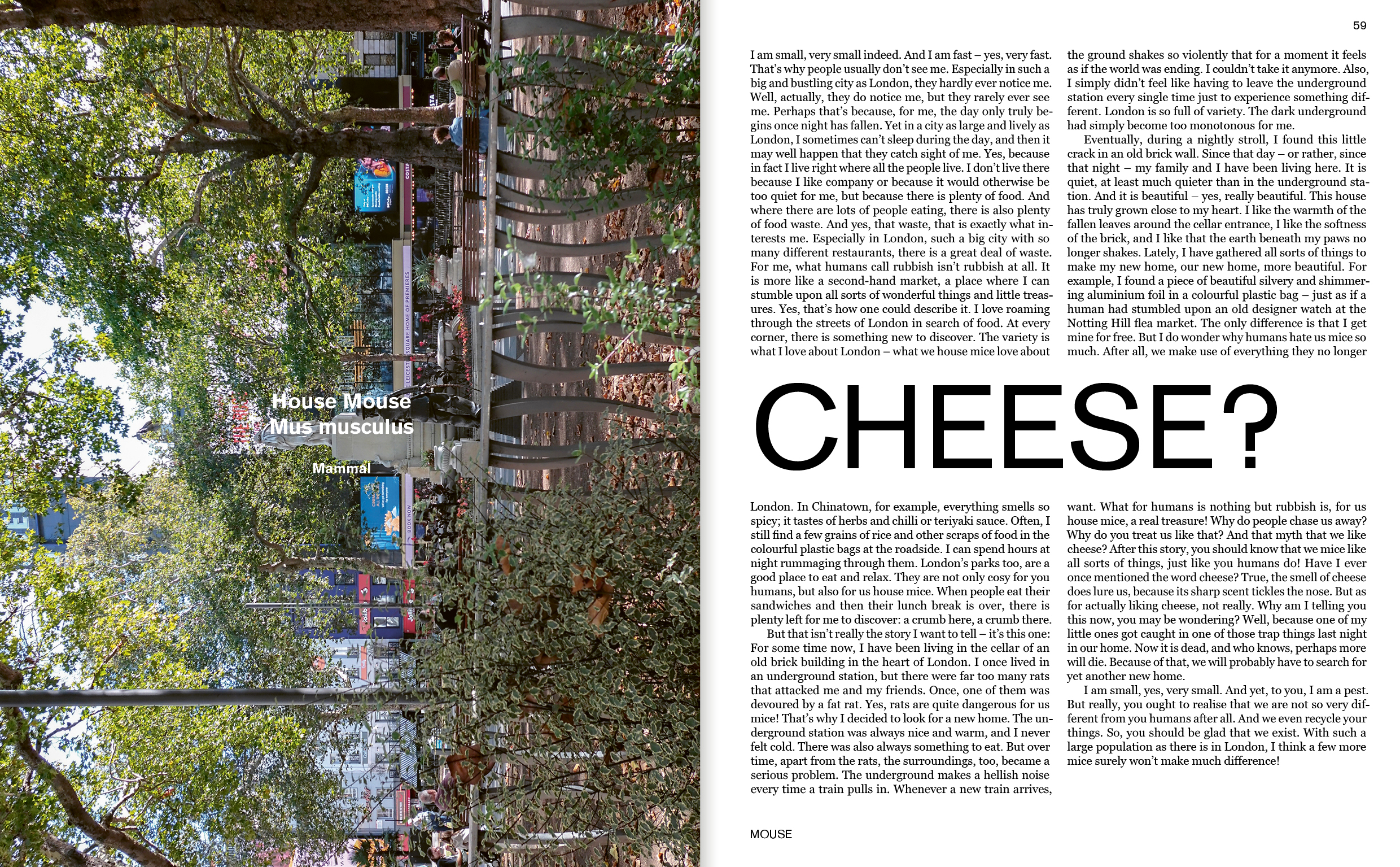 Big cities like London are full of surprises, even in places where you least expect them. This book shows that wild animals have long become part of the urban habitat. Foxes, birds, and pikes appear as silent cohabitants of the city. Short dialogues paint a picture of urban nature, while abstract image sequences create a visual pause and reveal the animals’ perspective. In this way, “When the City Roars” becomes a loud narrative about quiet life – a glimpse into the wild heart of London that continues to beat even amid the urban hustle and bustle.