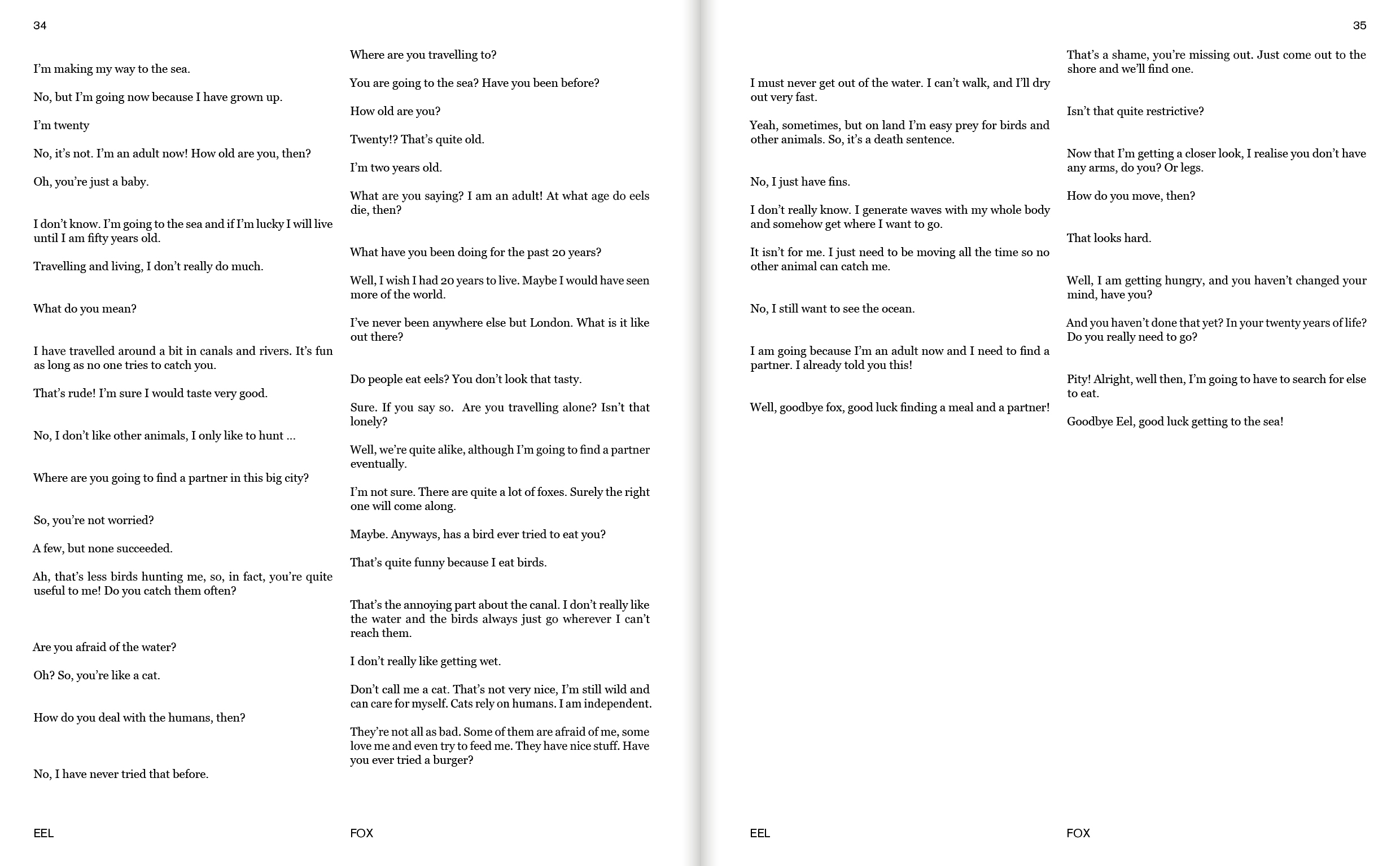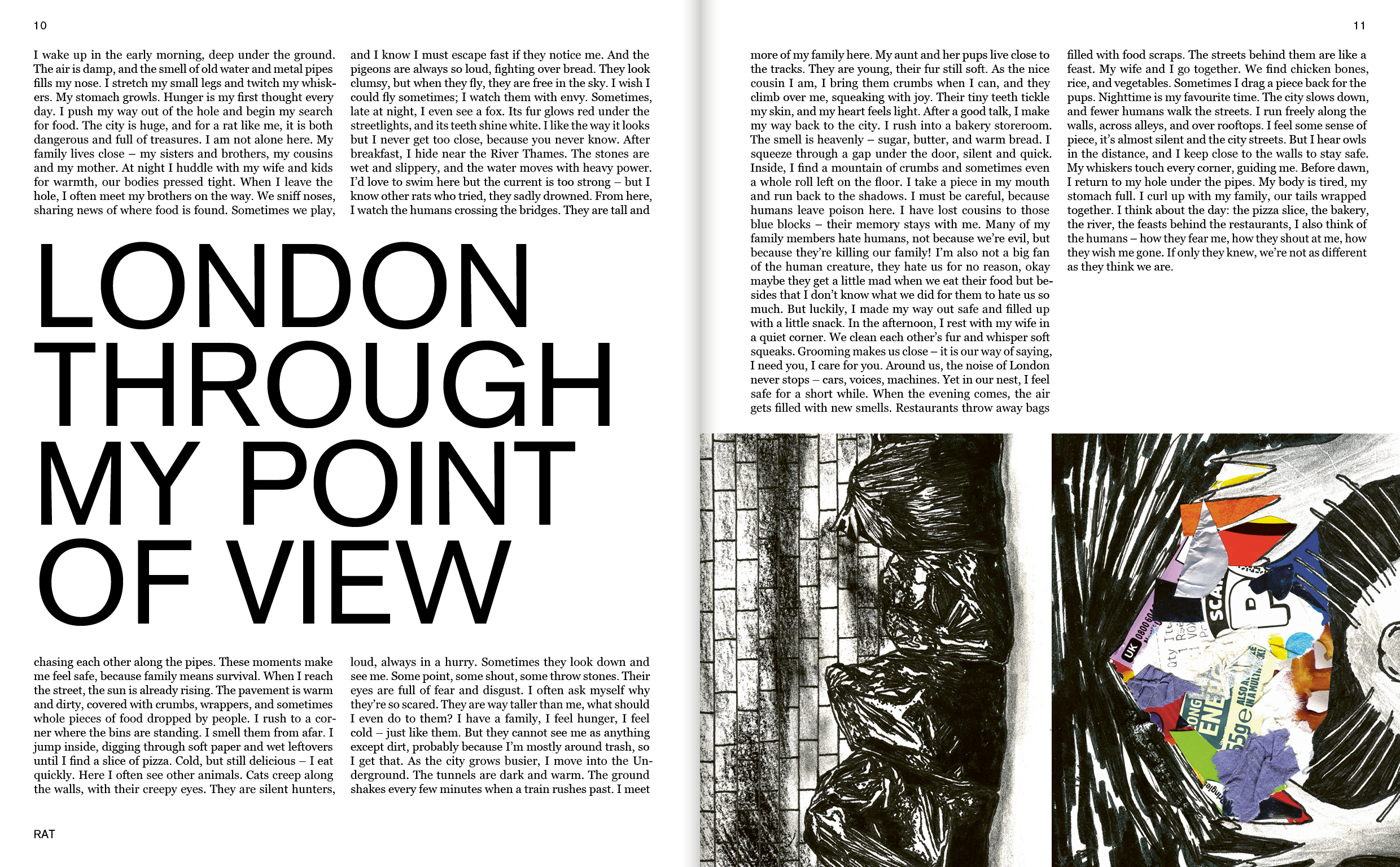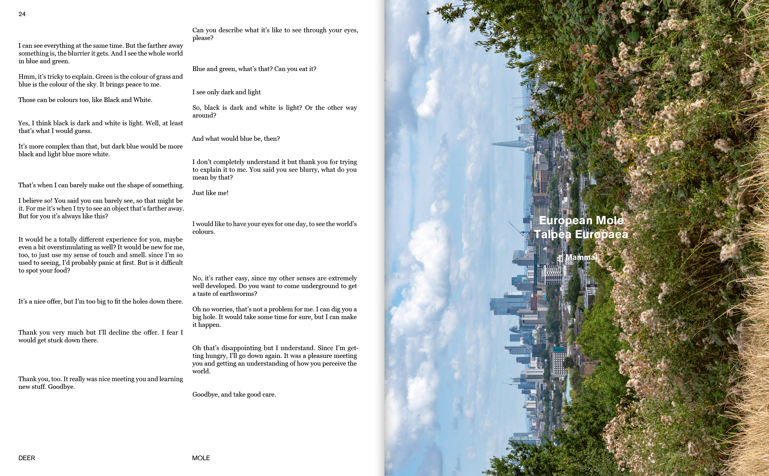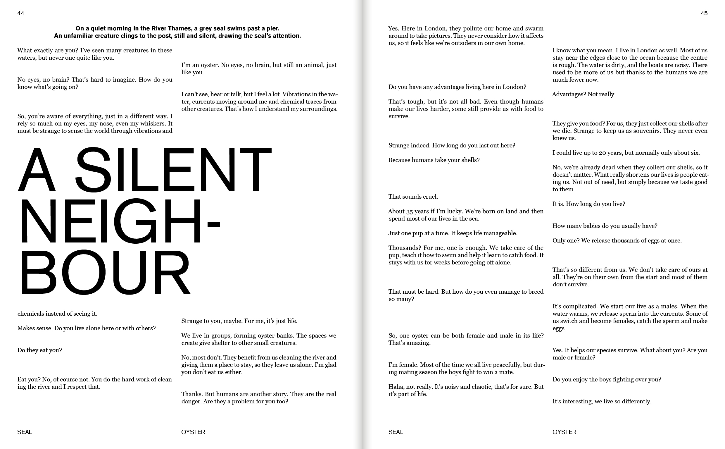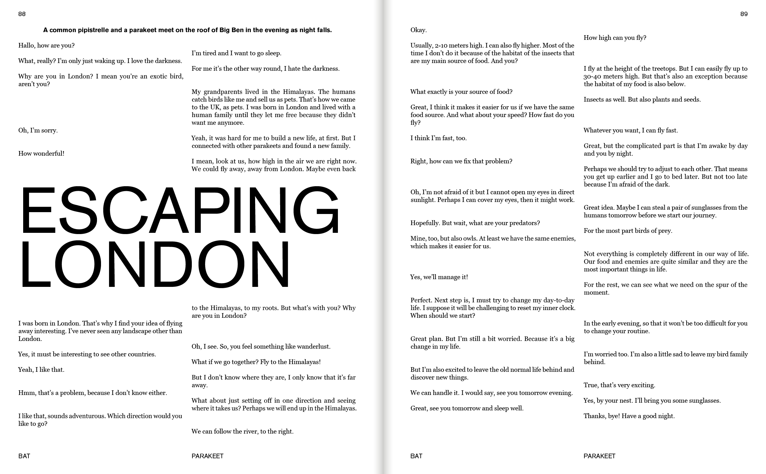 Big cities like London are full of surprises, even in places where you least expect them. This book shows that wild animals have long become part of the urban habitat. Foxes, birds, and pikes appear as silent cohabitants of the city. Short dialogues paint a picture of urban nature, while abstract image sequences create a visual pause and reveal the animals’ perspective. In this way, “When the City Roars” becomes a loud narrative about quiet life – a glimpse into the wild heart of London that continues to beat even amid the urban hustle and bustle.