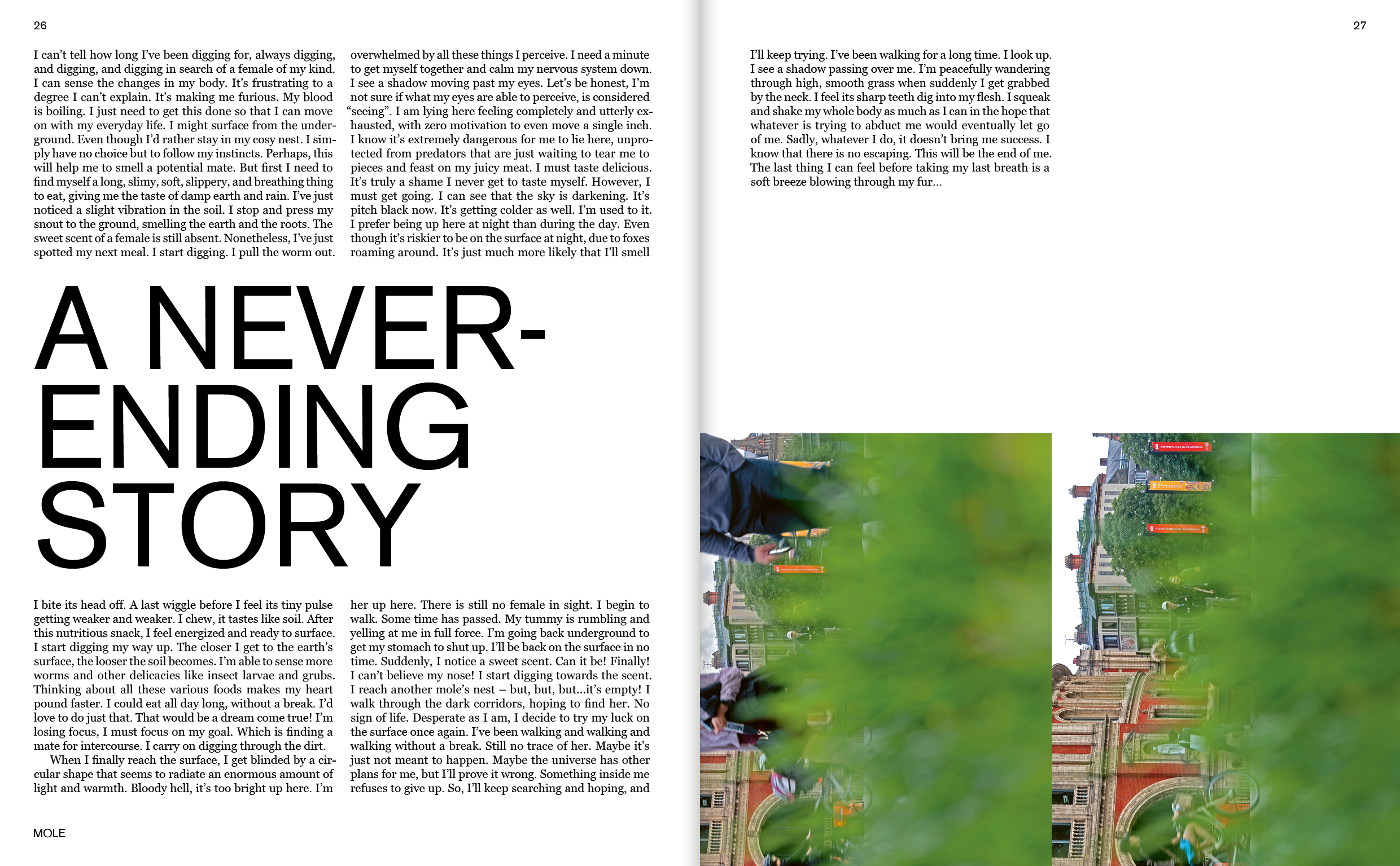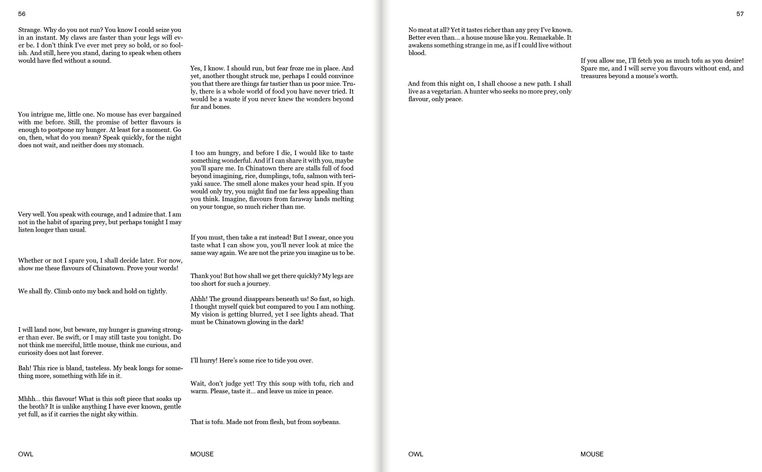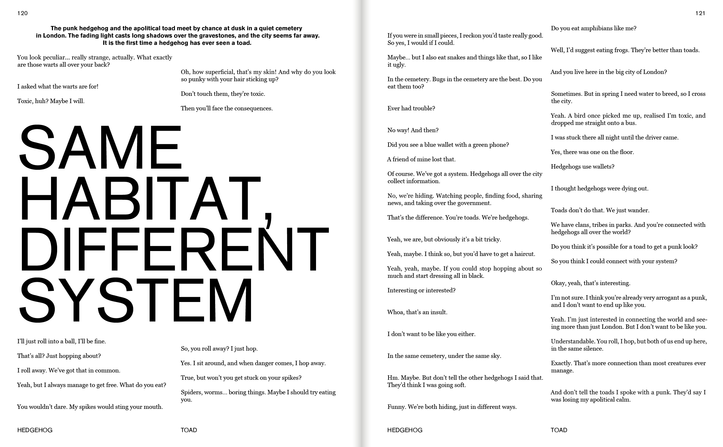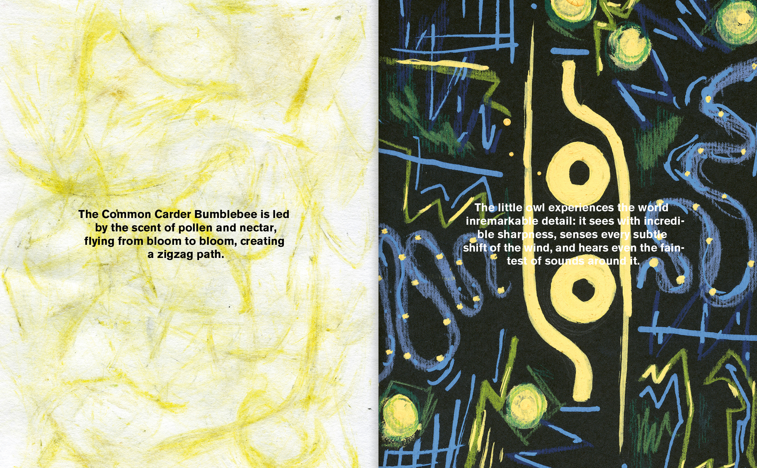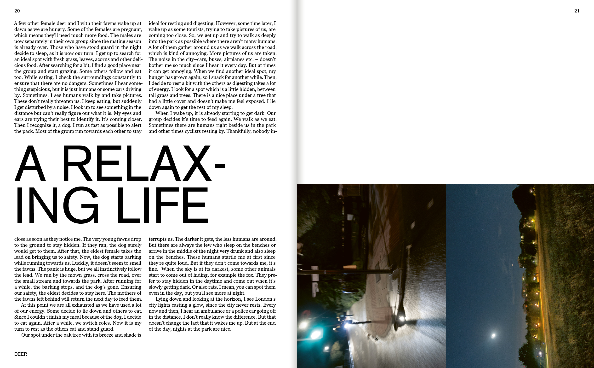 Big cities like London are full of surprises, even in places where you least expect them. This book shows that wild animals have long become part of the urban habitat. Foxes, birds, and pikes appear as silent cohabitants of the city. Short dialogues paint a picture of urban nature, while abstract image sequences create a visual pause and reveal the animals’ perspective. In this way, “When the City Roars” becomes a loud narrative about quiet life – a glimpse into the wild heart of London that continues to beat even amid the urban hustle and bustle.